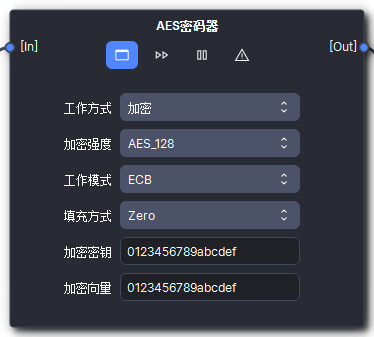 AES密码器节点主要功能是对数据进行AES加密和解密。